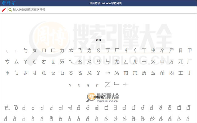 特殊字:Unicode文字符号搜索引擎