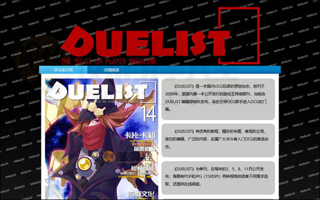 -   DueList:纸牌游戏原创杂志【中国】 DueList:纸牌游戏原创杂志【中国】搜索生活 2025-10-30 《DUELIST》是一本中国OCG玩家的原创杂志,创刊于2009年,是中国第一本公开发行的游戏王网络期刊。 关键词:DueList,杂志,纸牌游戏杂志,纸牌游戏杂志,原创杂志