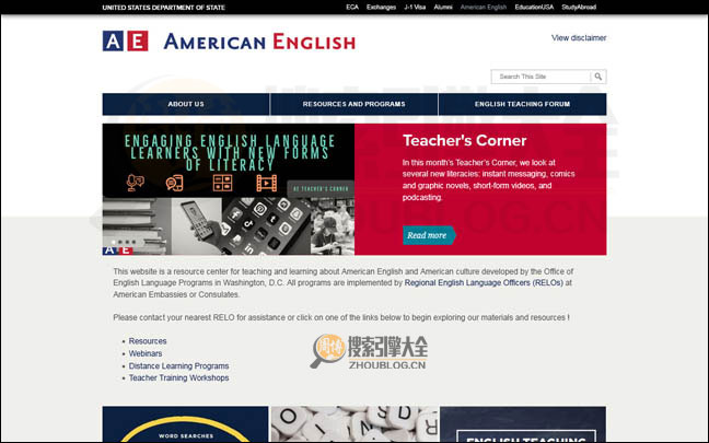 美国英语是美国英语语言和文化的教学和学习的资源中心。这个网站提供了各种从事材料和资源,为教师的专业发展和学生在课堂上。教师和学生都将找到新的方法来练习英语和了解更多关于美国的。